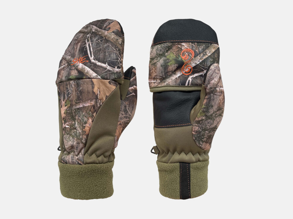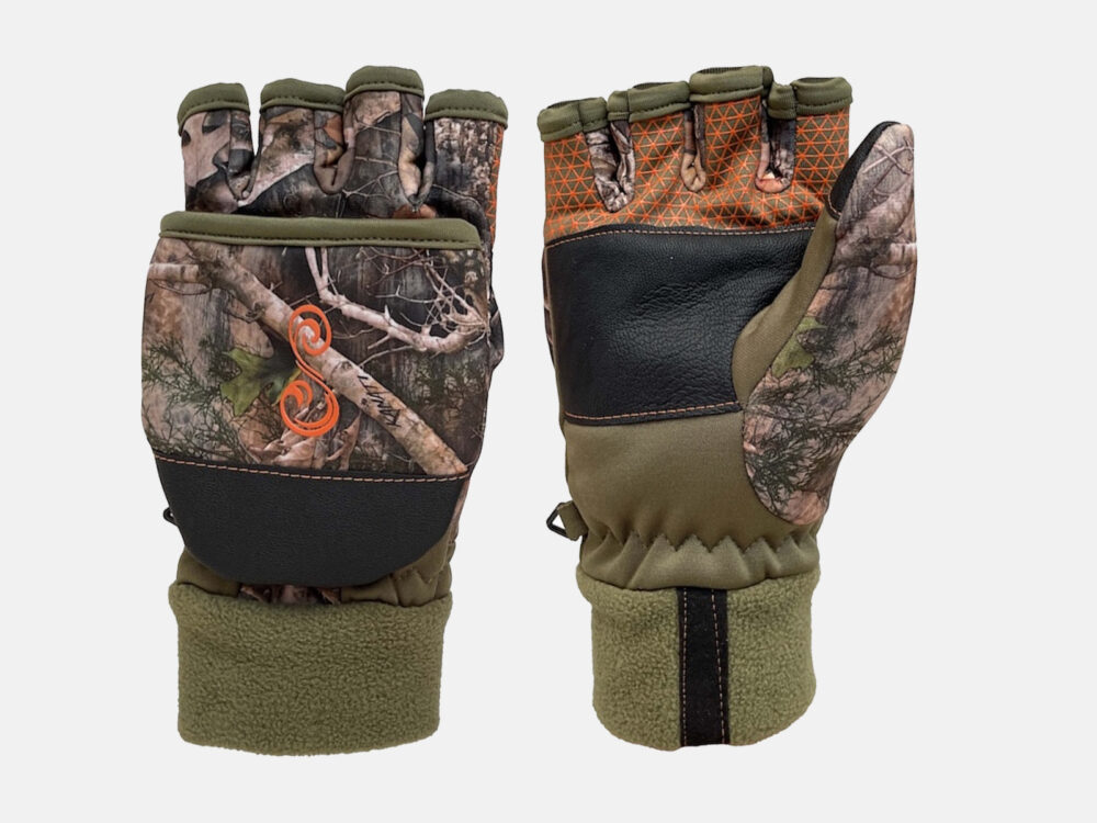 These hunting gloves have an innovative design: the flap on the back of the hand can be flipped down to turn into a mitten. With camouflage, durable materials, and a snug fit, they offer adaptability for hunting.