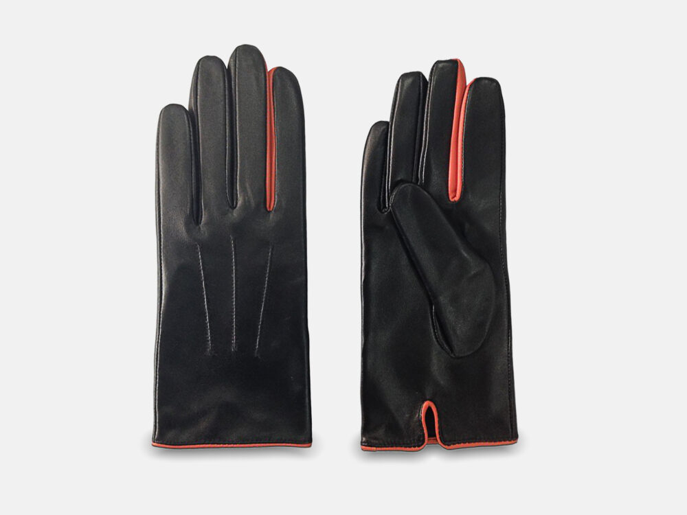 These sleek black goat leather gloves boast a 100% cashmere lining for unmatched warmth, accented by subtle red trim for a stylish edge. The slim fit ensures a sophisticated, snug feel—perfect for cold-weather elegance.