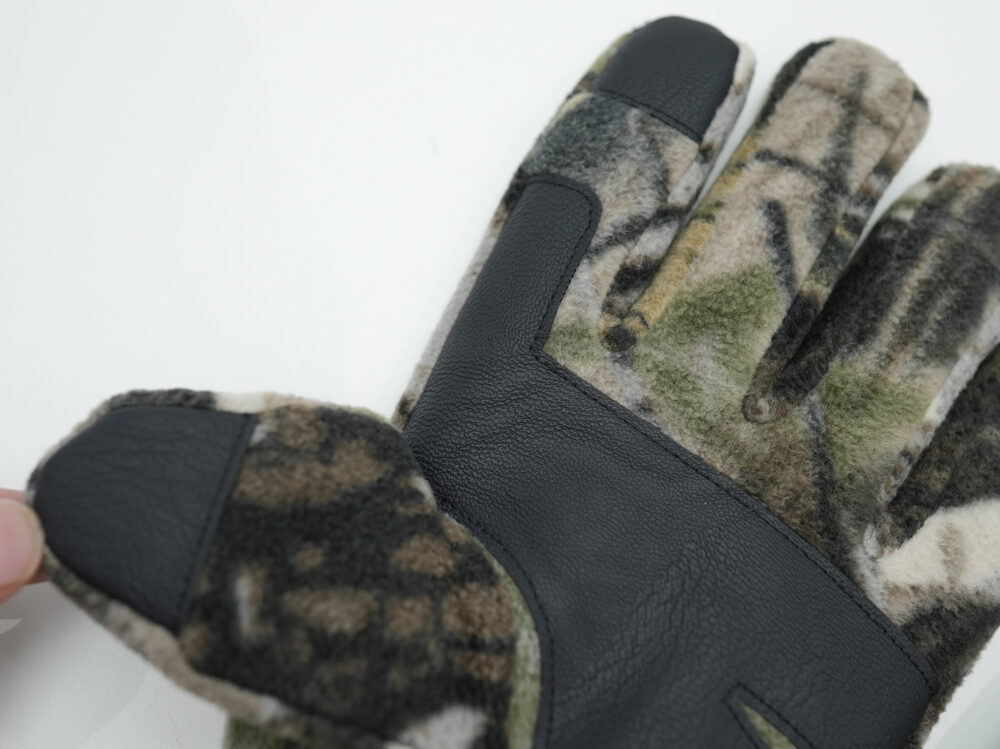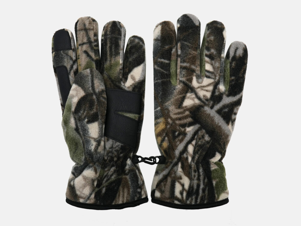 These polar fleece hunting gloves blend warmth and functionality. The camouflage pattern offers concealment in the wild. Reinforced palm patches boost grip & durability for gear handling. A handy clip keeps the pair together. Lightweight yet cozy, they ensure comfort and stealth during hunts.